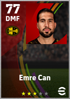 . Emre Can is a Defensive Midfielder footballer from Germany who plays for Borussia Dortmund in eFootball 2026.