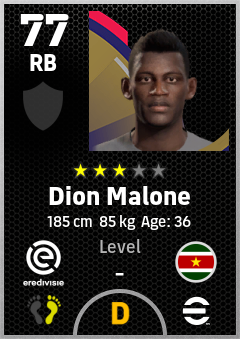 . Dion Malone is a Right Back footballer from Suriname who plays for Telstar in eFootball 2026.