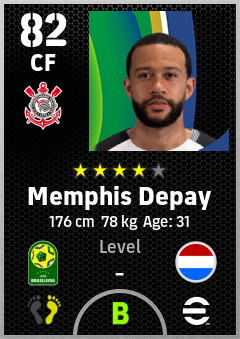 . Memphis Depay is a Center Forward footballer from Netherlands who plays for Sc Corinthians Paulista in eFootball 2026.