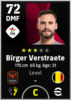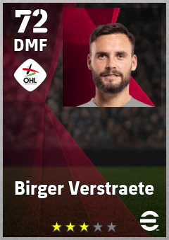 . Birger Verstraete is a Defensive Midfielder footballer from Belgium who plays for Leuven Wzrg in eFootball 2026.