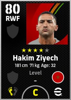 . Hakim Ziyech is a Right Wing Forward footballer from Morocco who plays for Free in eFootball 2026.