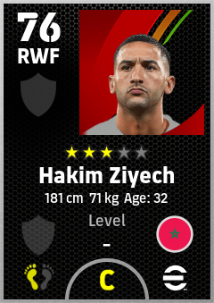. Hakim Ziyech is a Right Wing Forward footballer from Morocco who plays for Free in eFootball 2026.