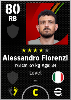 . Alessandro Florenzi is a Right Back footballer from Italy who plays for Free in eFootball 2026.