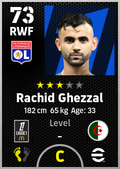 . Rachid Ghezzal is a Right Wing Forward footballer from Algeria who plays for Olympique Lyonnais in eFootball 2026.