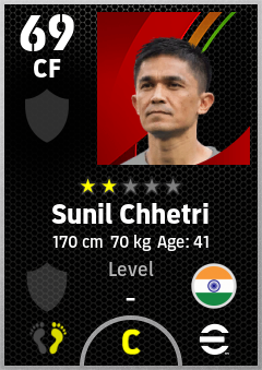 . Sunil Chhetri is a Center Forward footballer from India who plays for Free in eFootball 2026.
