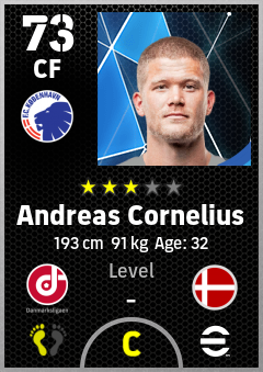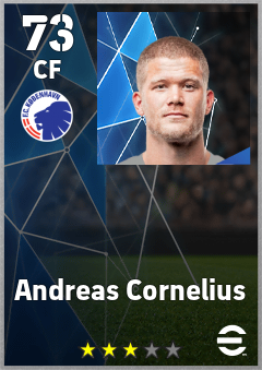 . Andreas Cornelius is a Center Forward footballer from Denmark who plays for København Hb in eFootball 2026.