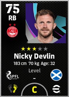 . Nicky Devlin is a Right Back footballer from Scotland who plays for Aberdeen Fc in eFootball 2026.