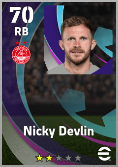 . Nicky Devlin is a Right Back footballer from Scotland who plays for Aberdeen Fc in eFootball 2026.