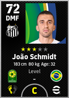 . João Schmidt is a Defensive Midfielder footballer from Brazil who plays for Santos Fc in eFootball 2026.