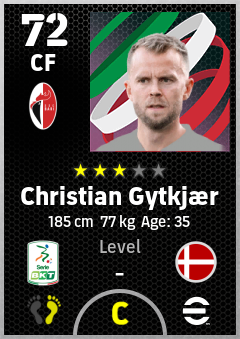 . Christian Gytkjær is a Center Forward footballer from Denmark who plays for Bari Br in eFootball 2026.