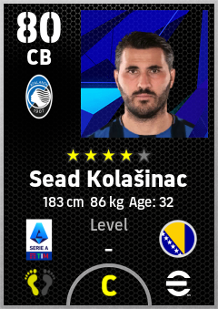 . Sead Kolašinac is a Center Back footballer from Bosnia And Herzegovina who plays for Atalanta Bc in eFootball 2026.