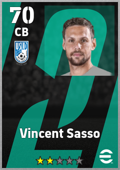 . Vincent Sasso is a Center Back footballer from France who plays for Usl Dunkerque in eFootball 2026.