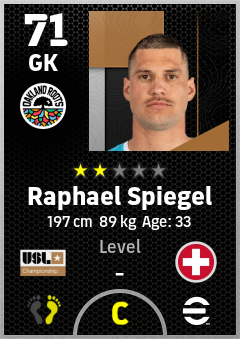 . Raphael Spiegel is a Goalkeeper footballer from Switzerland who plays for Oakland Roots Sc in eFootball 2026.