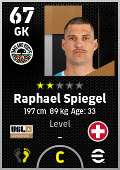 . Raphael Spiegel is a Goalkeeper footballer from Switzerland who plays for Oakland Roots Sc in eFootball 2026.