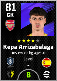 . Kepa Arrizabalaga is a Goalkeeper footballer from Spain who plays for Arsenal Fc in eFootball 2026.