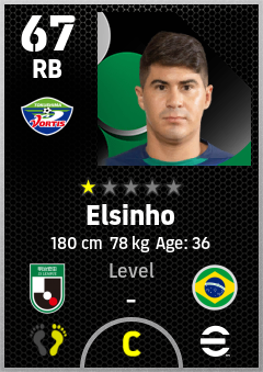. Elsinho is a Right Back footballer from Brazil who plays for Tokushima Vortis in eFootball 2026.