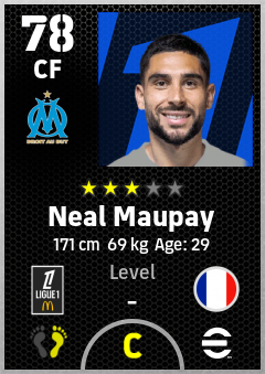 . Neal Maupay is a Center Forward footballer from France who plays for Olympique De Marseille in eFootball 2026.