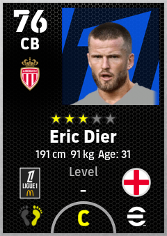 . Eric Dier is a Center Back footballer from England who plays for As Monaco in eFootball 2026.