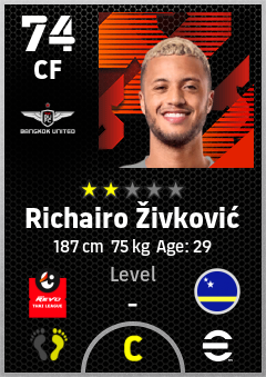 . Richairo Živković is a Center Forward footballer from Curaçao who plays for True Bangkok United Fc in eFootball 2026.