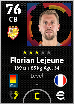 . Florian Lejeune is a Center Back footballer from France who plays for Vallecas Br in eFootball 2026.