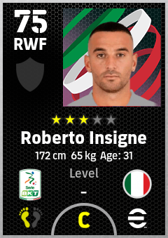 . Roberto Insigne is a Right Wing Forward footballer from Italy who plays for Avellino Bv in eFootball 2026.