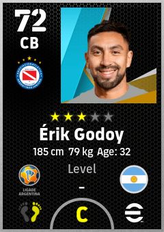 . Érik Godoy is a Center Back footballer from Argentina who plays for La Paternal Rb in eFootball 2026.