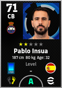 . Pablo Insua is a Center Back footballer from Spain who plays for Zaragoza Ba in eFootball 2026.