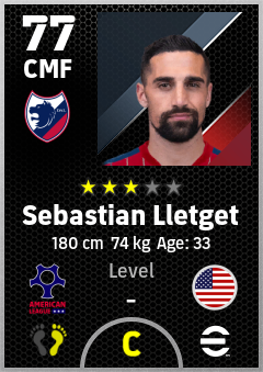 . Sebastian Lletget is a Center Midfielder footballer from United States who plays for Dallas Rw in eFootball 2026.