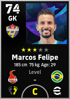 . Marcos Felipe is a Goalkeeper footballer from Brazil who plays for Eyüpspor in eFootball 2026.