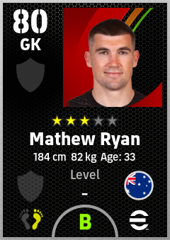 . Mathew Ryan is a Goalkeeper footballer from Australia who plays for Free in eFootball 2026.