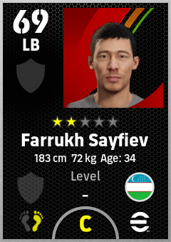 . Farrukh Sayfiev is a Left Back footballer from Uzbekistan who plays for Free in eFootball 2026.