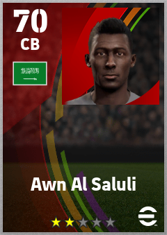 . Awn Al Saluli is a Center Back footballer from Saudi Arabia who plays for Free in eFootball 2026.