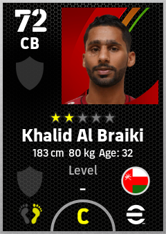 . Khalid Al Braiki is a Center Back footballer from Oman who plays for Free in eFootball 2026.
