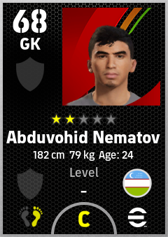 . Abduvohid Nematov is a Goalkeeper footballer from Uzbekistan who plays for Free in eFootball 2026.