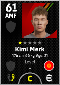 . Kimi Merk is a Attacking Midfielder footballer from Kyrgyz Republic who plays for Free in eFootball 2026.