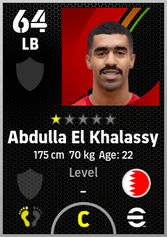 . Abdulla El Khalassy is a Left Back footballer from Bahrain who plays for Free in eFootball 2026.