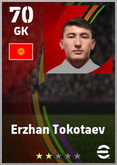 . Erzhan Tokotaev is a Goalkeeper footballer from Kyrgyz Republic who plays for Free in eFootball 2026.