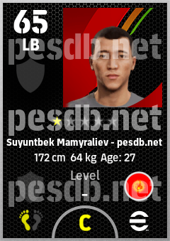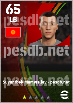 . Suyuntbek Mamyraliev is a Left Back footballer from Kyrgyz Republic who plays for Free in eFootball 2026.