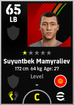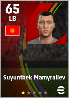 . Suyuntbek Mamyraliev is a Left Back footballer from Kyrgyz Republic who plays for Free in eFootball 2026.
