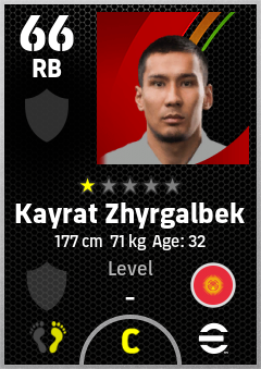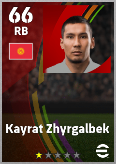. Kayrat Zhyrgalbek is a Right Back footballer from Kyrgyz Republic who plays for Free in eFootball 2026.