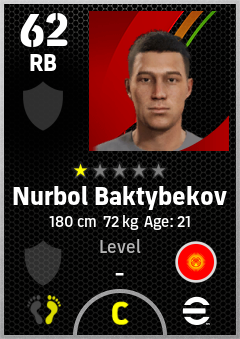 . Nurbol Baktybekov is a Right Back footballer from Kyrgyz Republic who plays for Free in eFootball 2026.