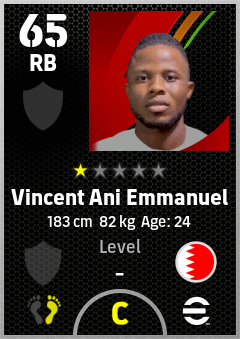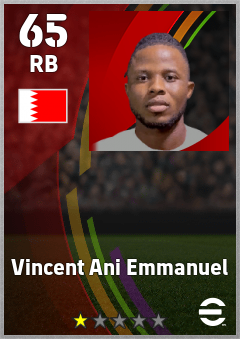 . Vincent Ani Emmanuel is a Right Back footballer from Bahrain who plays for Free in eFootball 2026.