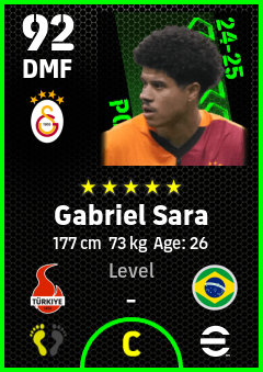. Gabriel Sara is a Defensive Midfielder footballer from Brazil who plays for Galatasaray Sk in eFootball 2026.