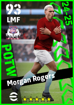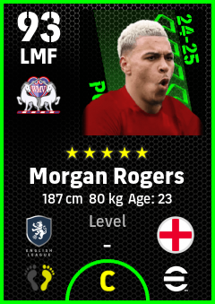 . Morgan Rogers is a Left Midfielder footballer from England who plays for Aston Rb in eFootball 2026.
