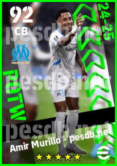 . Amir Murillo is a Center Back footballer from Panama who plays for Olympique De Marseille in eFootball 2026.