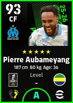 . Pierre Aubameyang is a Center Forward footballer from Gabon who plays for Olympique De Marseille in eFootball 2026.