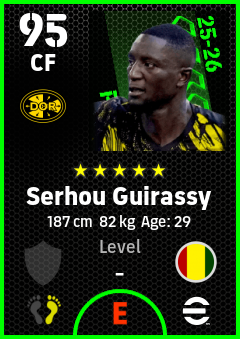 . Serhou Guirassy is a Center Forward footballer from Guinea who plays for Borussia Dortmund in eFootball 2026.