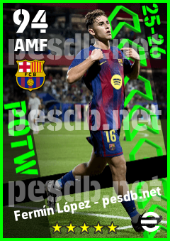 . Fermín López is a Attacking Midfielder footballer from Spain who plays for Fc Barcelona in eFootball 2026.