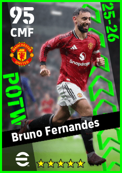 . Bruno Fernandes is a Center Midfielder footballer from Portugal who plays for Manchester United in eFootball 2026.