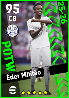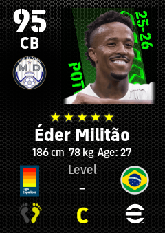 . Éder Militão is a Center Back footballer from Brazil who plays for Madrid Chamartin B in eFootball 2026.